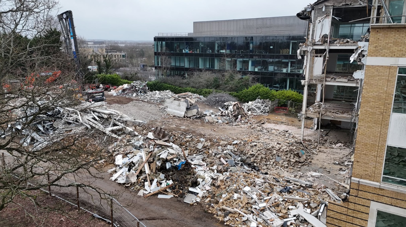 The demolition of a large office building in Bracknell continues to clear the way for a new industrial warehouse.